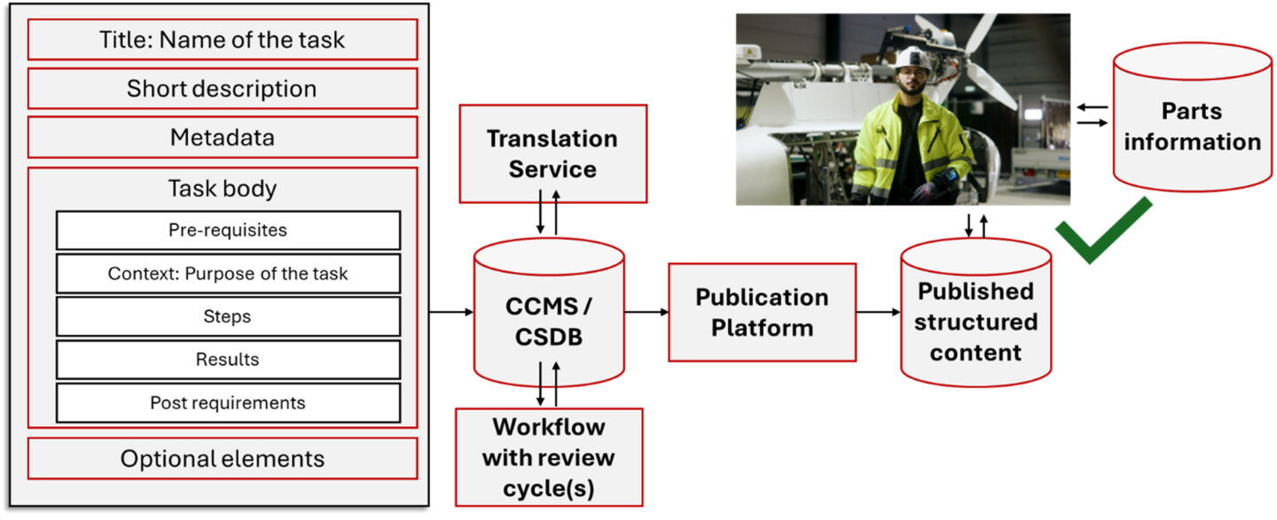 - Consistent instructions: modular and compliant with relevant standards like S1000D, DITA, or any custom structured format